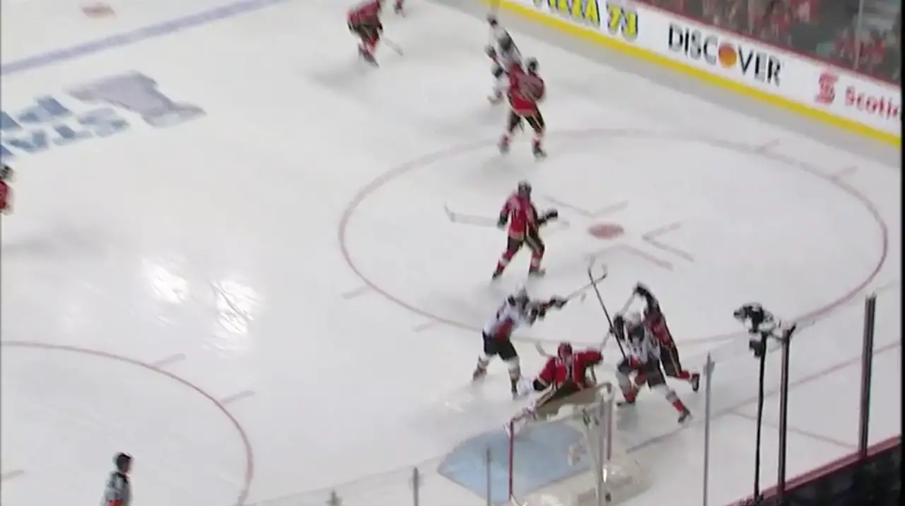 While we join the group of fans who vehemently disagree with the NHL’s decision to uphold that iffy Thompson goal, it’s important to realize that jumping to the conclusion that the review guy in Toronto is to blame for the Flames’ season going up in smoke (lol) is a bit preemptive. Therefore, The Win Column team put together two detailed scientific analyses on that particular play in order to determine exactly what happened and prove which way the call should have gone.